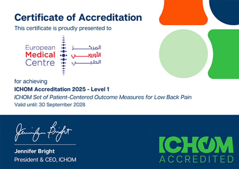 Adding to these achievements, EMC has officially obtained the ICHOM Level 1 Accreditation for the Low Back Pain Standard Set—a recognition that affirms EMC’s capability to collect, report, and act upon patient-centered outcomes data in alignment with international standards. This accreditation marks EMC as one of the few healthcare institutions in the region to reach this milestone.
